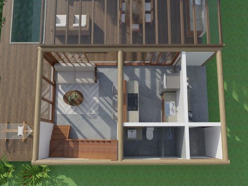 Projeto arquitetônico com 2 pavimentos, priorizando integração entre os ambientes e aproximação com o entorno natural.