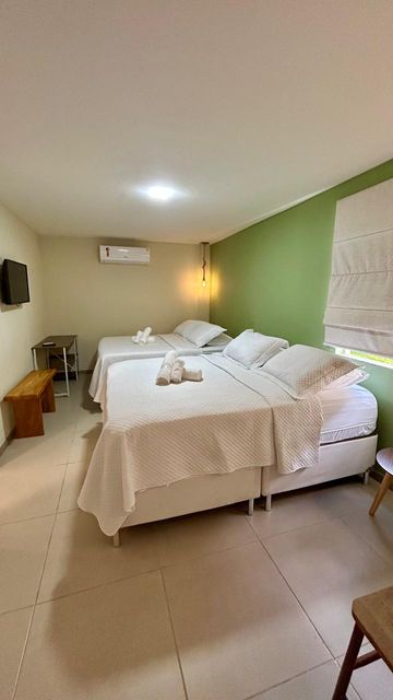 Com 19 Suítes (sendo 2 suites a passagem é pela area de serviço), camas, televisões, frigobar, ar-condicionado, troca feita em 2023, espaçosas e modernas, a pousada garante conforto e privacidade aos seus hóspedes. A localização é simplesmente imbatível: a poucos passos da badalada Rua da Pituba – o coração gastronômico e cultural de Itacaré – e a uma curta caminhada da Praia da Coroa.