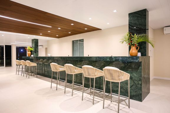 A infraestrutura é um verdadeiro convite ao bem viver: clube social com rooftop panorâmico, restaurante de alto padrão, marina privativa com acesso direto ao mar, piscina de 700 m², heliponto homologado pela ANAC, beach club, quadras esportivas, espaços de bem-estar e conveniência.